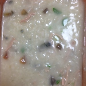 2/3的皮蛋粒,手撕肉放入白粥中,继续小火熬至粘稠