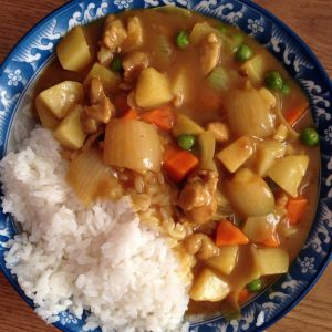 放入咖喱块,用铲子把咖喱块在锅中搅拌,小火咕嘟五分钟出锅
