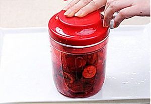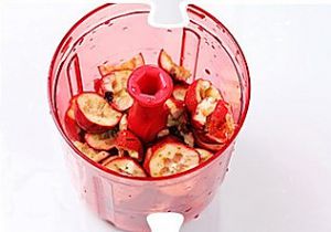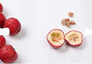 教大家一个去处山楂仔的好办法,将山楂横着切一刀,双手用力一挤,山楂仔就出来了