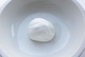 将水磨糯米粉放入盆中,加入温水用手充分搓揉成团状