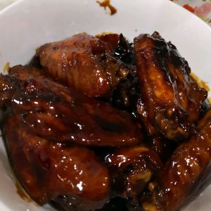 倒入料酒加盖烧滚,加生抽,可乐没过鸡翅