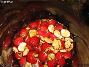 对半剖开,去黑头,去尾蒂,把籽抠掉,这个活是最辛苦的,我干了一个小时把山楂的果肉扔到豆浆机里,选全豆豆浆模式,等着豆浆机给你粉碎,然后反复煮沸,20分钟后山楂浆就做好了!