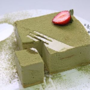 牛奶加抹茶粉小火煮开搅拌至抹茶粉完全化开,离火待凉后倒入奶酪中拌匀