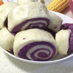 紫薯泥中加入糖,酵母,盐,面粉(紫薯泥的温度不要太烫,蒸好后放凉一会)揉成光滑面团