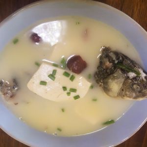 然后加入煎好的鲫鱼,葱,大火20分钟,再加入豆腐,盐,醋小火10到20分钟,美味的豆腐鲫鱼汤就做好了。