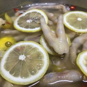 倒入切好的鸡爪 再加入葱 姜 煮8-15分钟左右 捞出用冷水冲洗 或者用冰水更佳