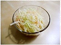西瓜皮削去绿色的外皮和红色的瓜瓤,仅留中间的青色部分切成细丝;