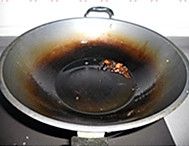 另起锅,烧热后放油,油热后放入小红辣椒碎和花椒,炸出香味后,将辣椒和花椒捞出;