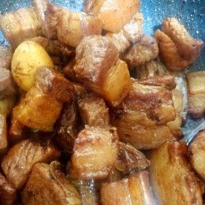炖30分钟左右,中途放入几个鹌鹑蛋(用刀打花刀),收汁儿,出锅,由于是明天中午带的午饭就不盛出来了。