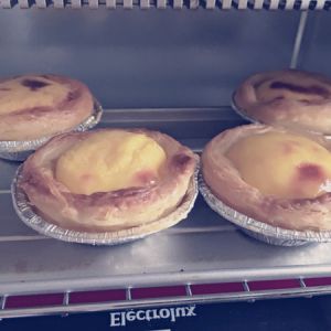 烤箱预热五分钟,放入蛋挞烤十分钟左右,蛋液变色即可出炉