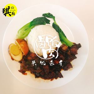 最后 将焯好的青菜 米饭 卤蛋 卤肉 装盘 即可