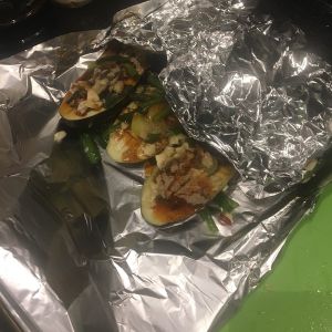 取出,用叉子画开锡箔纸,配点小酒喝着,就开始夜宵烧烤了。半个小时之内入嘴,好惬意!