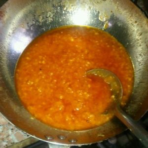 热油,倒入葱 姜 蒜和番茄酱,倒点水,盐 糖 醋 等调料调味,烧开。