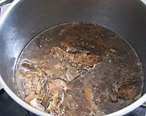 盖上锅盖,大火煮开后调小火,炖煮2小时。酱香味浓的酱骨架就做好了。