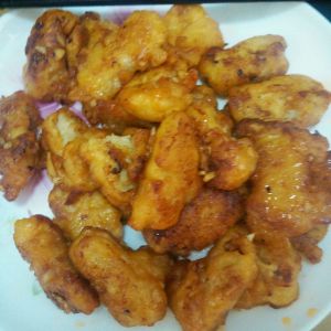 淀粉和面粉1:1的比例,打入一个鸡蛋,再加少量水调制成全蛋糊液,要粘稠一点