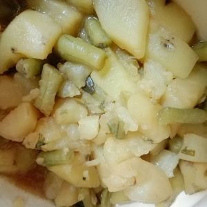 添水、盐,淹没锅内的土豆豆角盖锅盖炖