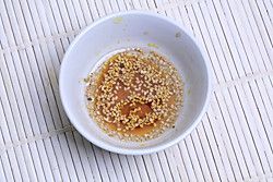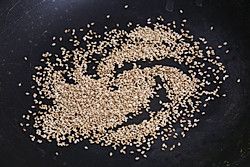 芝麻一定要用煎锅慢火烤熟,等芝麻在锅上跳舞并烤出香味。