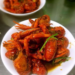 倒入炸好的小龙虾翻炒,再倒入炒好的蒜蓉翻炒几下,加入生抽,蚝油略翻炒。