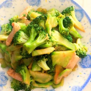 放入焯水的西蓝花迅速翻炒几下就可以了