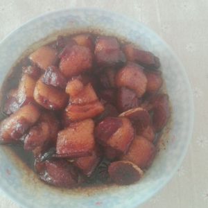 肉切成均匀块状,洗净备用。说实在的,买回家之后才发现这肉不像五花肉,不过幸好肥肉不夸张。