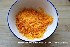 蛋黄里加入半勺白酒入锅蒸15分钟,拿出后用勺子碾成末状,越细越好