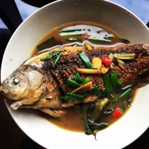 起火,加食用油,放一些姜,开始煎鱼,期间把握火候,频繁给鱼翻身,直至鱼表面呈现金黄色。