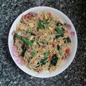 1.炒鸡蛋液;2.锅里倒入适量花生油炒芥蓝,等芥蓝五分熟的时候倒入番茄,然后再倒入瘦肉碎并搅拌均匀,等全部熟了后倒入鸡蛋和面线,最后搅拌均匀就可以出锅了(因为面线本身就是咸的,所以口味比较淡的可以不加盐)。