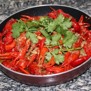 捞出小龙虾,倒入汤汁,撒点香菜呀,白芝麻点缀,拍照,开吃!