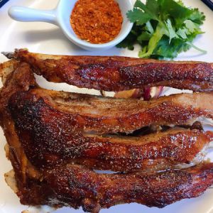 翻面撒上孜然粒不用包锡纸再烤10分钟外皮酥脆即可。
