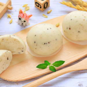藜麦馒头就完成啦!蒸好后的藜麦馒头特别松软,上面还点缀着一些藜麦颗粒。