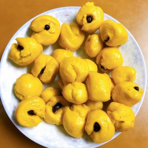 加红糖揉进去(也可以一开始搅拌面粉的时候就加入红糖),因为我蒸了一块特别大的南瓜,全部做馒头太多了,只切了一部分另外加红糖