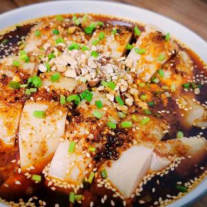 起锅倒油,放入葱段和花椒小火炸出香味(此时油肯定冒烟了),让油稍微降降温,滤出葱和花椒倒进刚才的辣椒碗里搅拌均匀后放凉