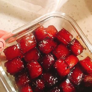 好啦 摆盘 东坡肉就做好啦 看着色泽很诱人 一口咬下去 都是脂肪 不说了 我要胖儿去了 嗯 真好吃