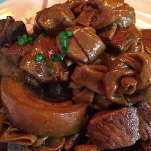 百叶结 买的光滑的手工百叶 那种有纹路的毛毛的不好吃不劲道.(百叶结可以换成毛豆 白煮蛋 鹌鹑蛋 油扁干 豆腐干 老豆腐 泡发的笋干 泡发的茶树菇干等)