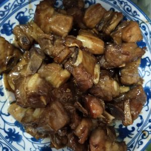 锅钟放入油、放入剩余的姜片、葱花(葱花不用切,洗净缠成结)小火煎出葱油,把葱花捞起放入冰糖炒出糖色,放入排骨翻炒,看到排骨两边都有焦黄色。放入老抽、生抽、耗油在翻炒一会给排骨全部都上色后、倒入陈醋,倒入清水(清水最好漠过排骨),中火煮15-20分钟,等汁水变少大火收汁即可。