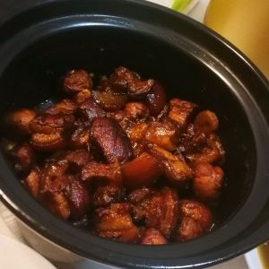 倒入砂锅,炖40分钟,倒入炒锅收汁加入鸡精出锅
