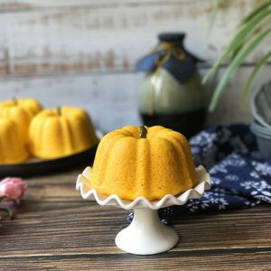 再将南瓜球光滑的一面放入南瓜模具底部,用手轻轻按压贴合模具