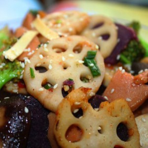 出锅前放入已经准备好的蒜末.香葱末.香菜末.白芝麻等,最后淋上少许香油出锅。