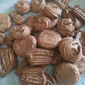 用勺子把面糊装入裱花袋,选择喜欢的花嘴,挤在铺好烘焙纸的烤盘里