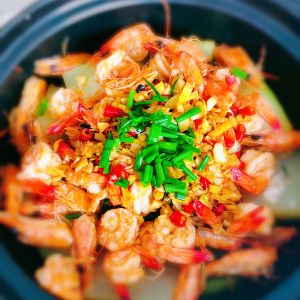 起锅,放入适量的油(因为我家对油是有控制的,所以不适用油炸)放入虾头,炒出虾油,拣出虾头,把改刀好的虾仁翻炒,看见虾变颜色,盛出至砂锅