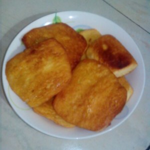 就是在超市买回来的老面馒头,切片,不要太薄,否则进油太厉害,影响口感。