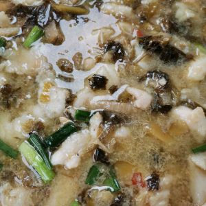 酸菜煮开炖两分钟放鱼肉搅散,煮开