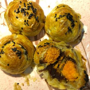 ☺︎烤箱预热150° 十分钟 将蛋黄酥送入烤箱上下管150° 20分钟