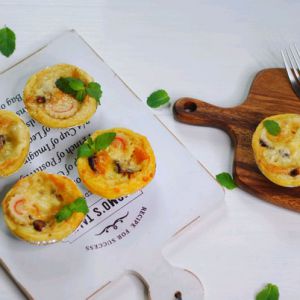 烤箱预热180度,5分钟后把芝士蛋挞送入烤箱,烘烤15分钟。