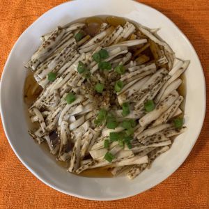 出锅浇上酱油,麻油,撒点盐,葱花即可 待凉后食用