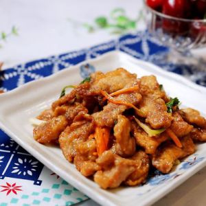 肉片别一次都放入,否则会粘在一起,炸的时候保持中火,控制好油温,否则很容易炸过了。