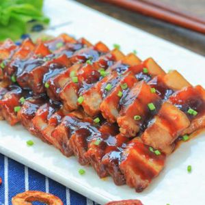 装盘,淋上锅中剩余的酱汁,一道甜蜜弹牙的蜜汁叉烧肉就完成啦~