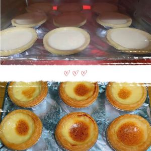 挞液倒进蛋挞皮至九分满,烤箱上下管210度20分钟中下层。每家烤箱脾气都不一样,要按自己实际喔,我家的是格兰仕30L的,所以我分了两盘来烤,用不完的挞液先放冰箱保存,不建议非大烤箱的孩纸两盘一起烤完,容易焦。