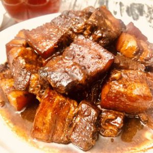 1.五花肉、葱、姜、大料、青梅准备好。我做红烧肉极少用其它香料。