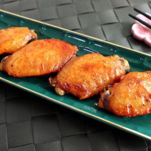 烤好的鸡翅刷上蜂蜜,摆入盘中